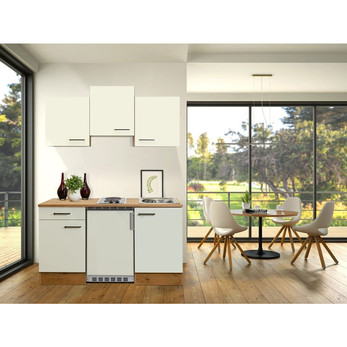 Flex-Well Singleküche GENUA - Elektrokochfeld & Kühlschrank - Breite 150 cm - Creme
