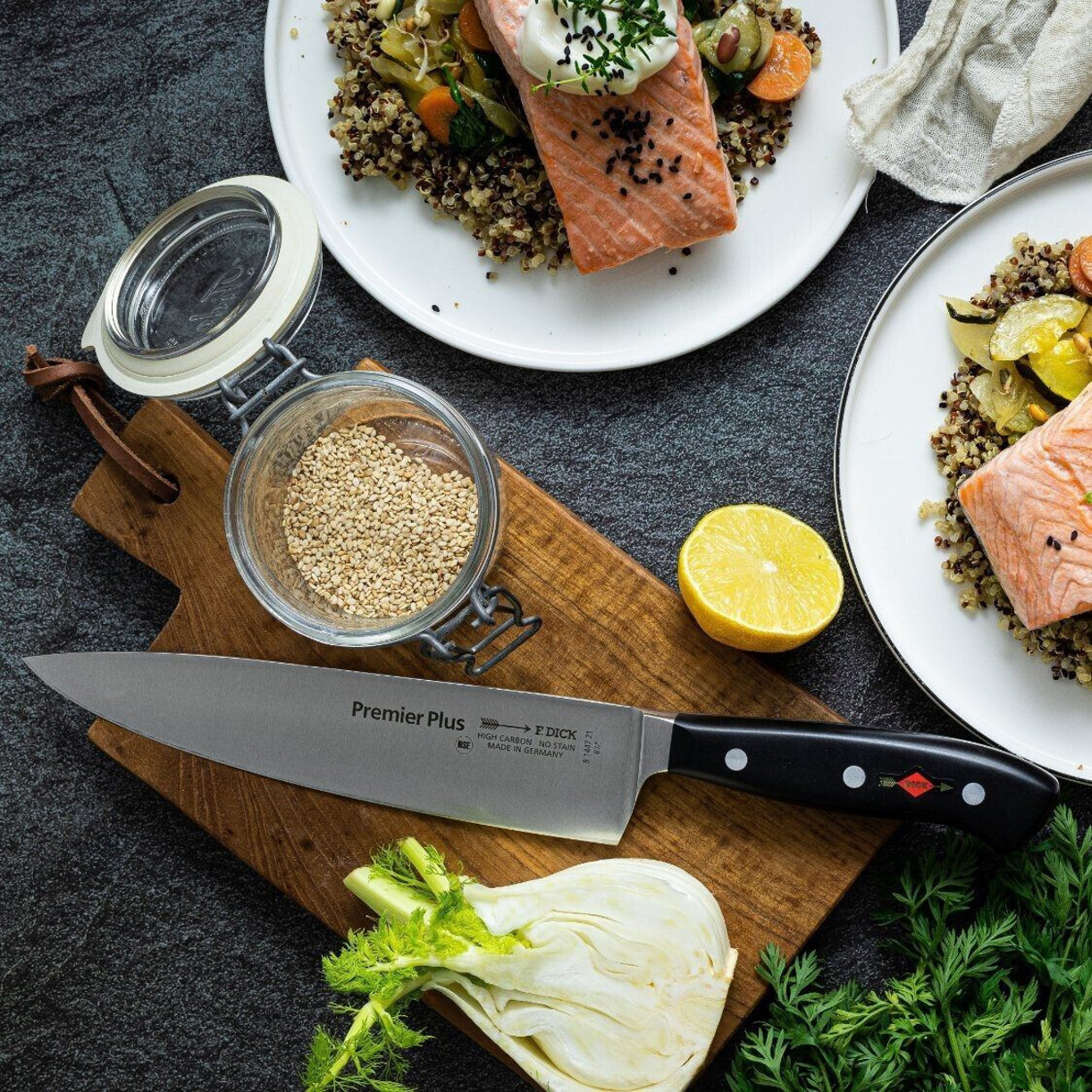 Entdecken Sie den exquisiten Friedr.Dick Premier Plus Messerblock 9 tlg., eine perfekte Ergänzung für jede hochwertige Küche. Dieser stilvolle Messerblock besteht aus elegantem braunem Holz und ist nicht nur ein Blickfang, sondern auch äußerst funktional. Von der ersten bis zur letzten Klinge ist jedes Messer der F. Dick Premier Plus Serie hervorragend verarbeitet und geschmiedet, um Ihnen optimale Schneideergebnisse zu garantieren.