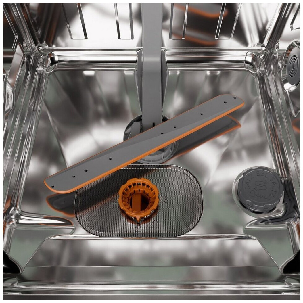 Der Geschirrspüler zeichnet sich durch einen niedrigen Geräuschpegel von lediglich 38 dB(A) aus, sodass Sie ihn auch in ruhigen Momenten problemlos nutzen können. Dank der innovativen Technik und der Trocknungswirkung der Klasse A genießen Sie glänzendes Geschirr ohne Streifen.