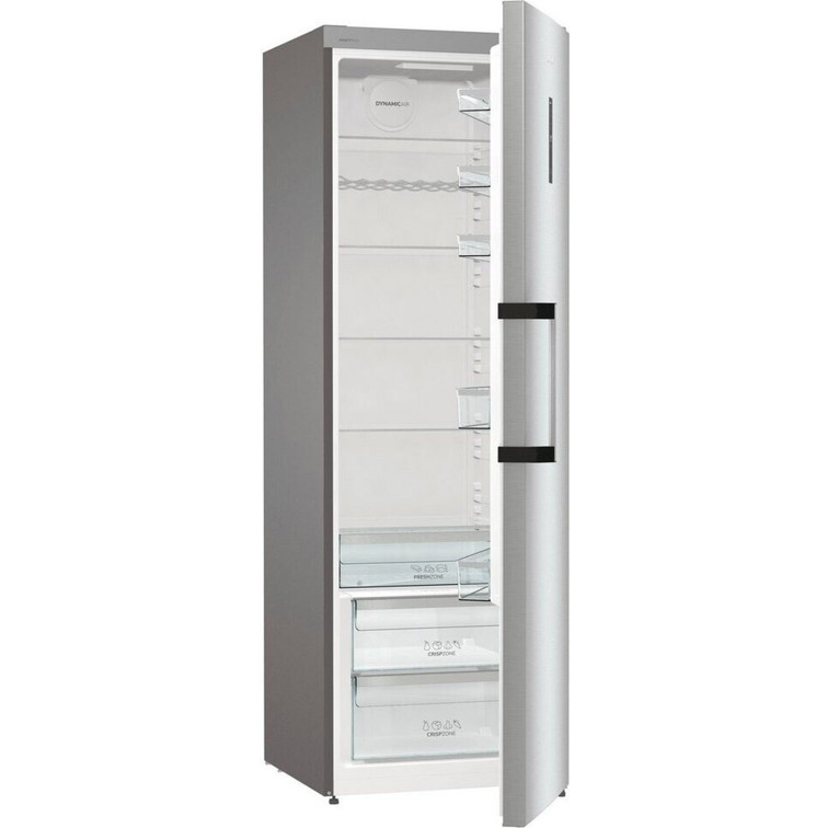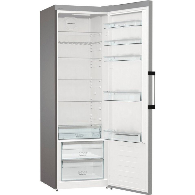 Entdecken Sie den Gorenje R619DAXL6, einen freistehenden Vollraumkühlschrank in elegantem Silber. Mit einer beeindruckenden Höhe von 185 cm und einer Breite von 59,5 cm fügt sich dieser Kühlschrank perfekt in jede Küche ein und bietet mit einem großzügigen Gesamtinhalt von 398 Litern ausreichend Platz für die Lebensmittel einer Familie.