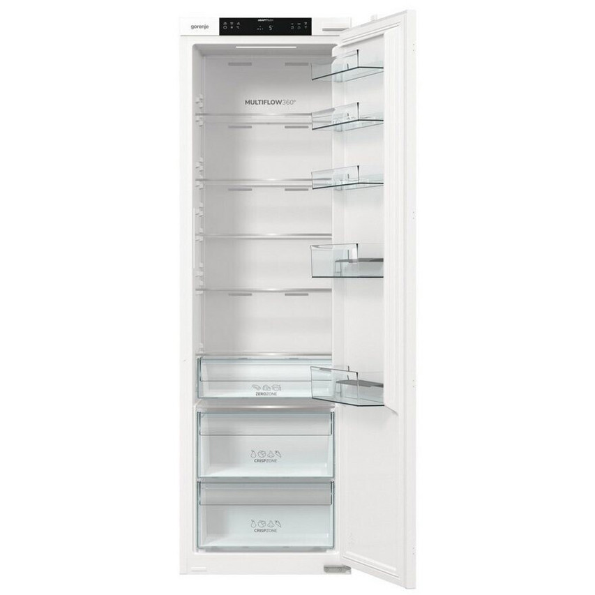 Entdecken Sie den Gorenje RI517E41WF, einen vollintegrierbaren Kühlschrank in elegantem weißen Design. Mit einer Breite von 55,5 cm und einer Raumhöhe von 177,2 cm ist er ideal für Familien und bietet großzügigen Platz mit einem Gesamtinhalt von 300 Litern, der vollständig als Kühlbereich genutzt wird.