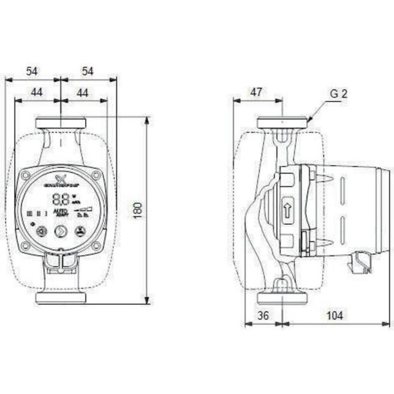 Hergestellt aus robustem Grauguss, bietet diese Pumpe Stabilität und Langlebigkeit. Die Einbaulänge beträgt 180 mm, und die Nennweite liegt bei DN32. Der Rohranschluss ist mit Rp 1 1/4" ausgestattet, während die Gewindegröße G 2" beträgt. Zudem verfügt die Pumpe über die Schutzart IP 42, die sie vor dem Eindringen von Fremdkörpern schützt.