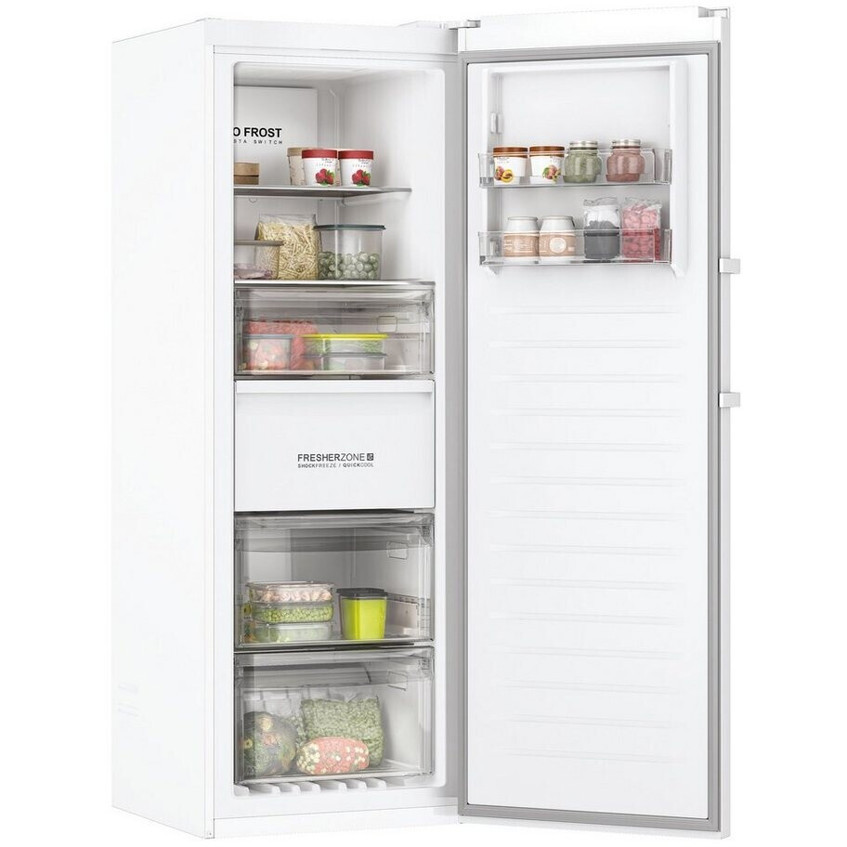 Mit einem Inhalt von 285 Litern und einem Gefriervermögen in 24 Stunden von 18 kg, bietet dieser Gefrierschrank genügend Platz für all Ihre Lebensmittel. Dank der No-Frost-Technologie müssen Sie sich nie wieder um das Abtauen kümmern!