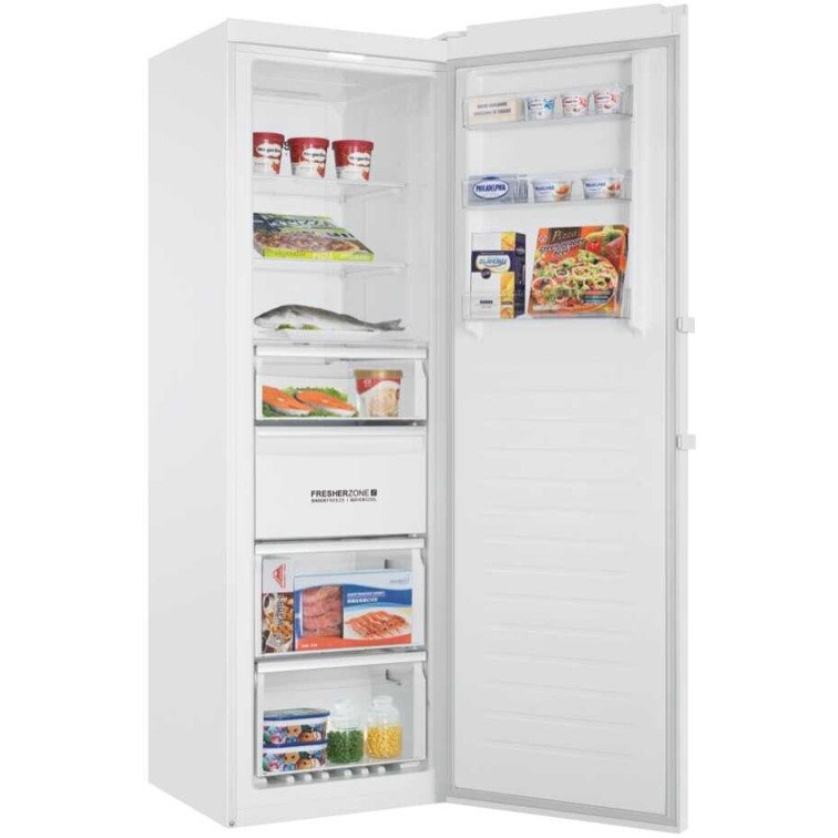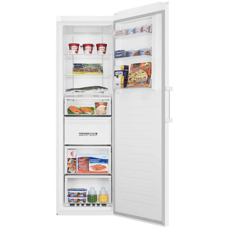 Der Gefrierschrank ist ideal für Haushalte mit großer Nachfrage und kann leicht mit einer Breite von 59,5 cm, einer Tiefe von 67 cm und einer Höhe von 190,5 cm in verschiedenen Küchenräumen platziert werden. Mit einem Warnsignal sowohl optisch als auch akustisch, sind Sie stets informiert, falls ein Problem auftritt. Außerdem hält der Gefrierschrank bei Störungen bis zu 16 Stunden Ihre Lebensmittel kühl.