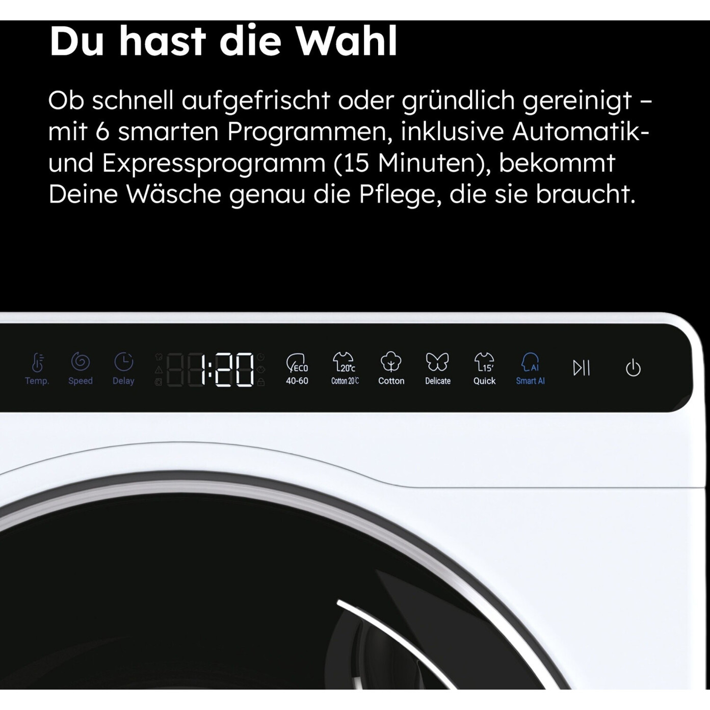 - Intelligente Funktionen: Ausgestattet mit einer App-Steuerung für smarte Haushalte, Dampffunktion, Nachlegefunktion und anpassbaren Einstellungen für Temperatur und Schleuderdrehzahl.