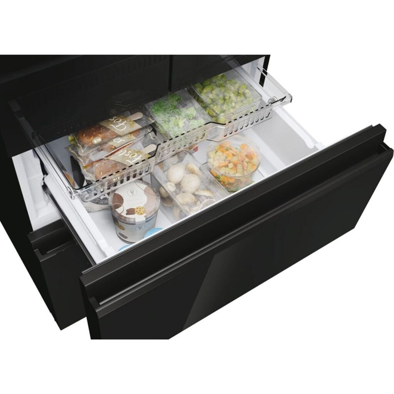 Die Innenraum-Ausstattung des Haier HFR3718ENGB lässt keine Wünsche offen: Sie finden praktische Abstellflächen, Türregale, eine ausziehbare Glasplatte, eine Eierablage sowie zwei Gefriergutschubladen. Die integrierte LED-Beleuchtung sorgt für eine optimale Sichtbarkeit Ihrer Lebensmittel.
