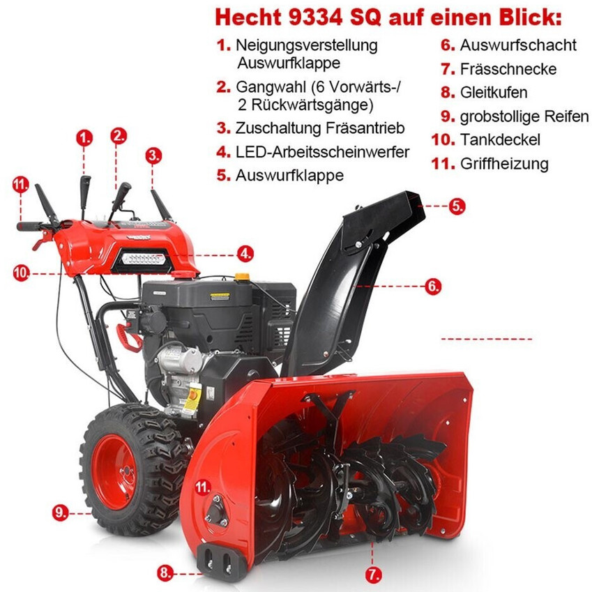 Die Hecht 9334 SQ ist die ideale Lösung für alle, die eine zuverlässige, leistungsstarke und benutzerfreundliche Schneefräse suchen.
