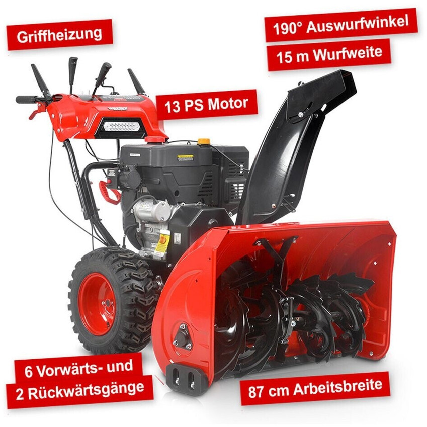 Dank der fortschrittlichen Startsysteme, einschließlich Elektrostart und Seilzugstart, ist das Gerät schnell in Betrieb genommen. Die maximale Wurfweite von 15 m ermöglicht es Ihnen, den Schnee genau dorthin zu befördern, wo Sie ihn haben möchten.