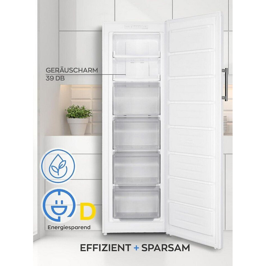 Der Geräuschpegel von nur 39 dB(A) sorgt dafür, dass der Gefrierschrank leise im Hintergrund arbeitet, ohne Ihre Ruhe zu stören. Zudem verfügt das Gerät über eine Sicherheitsvorrichtung mit Türalarm, die Ihnen zusätzliche Sicherheit gibt.