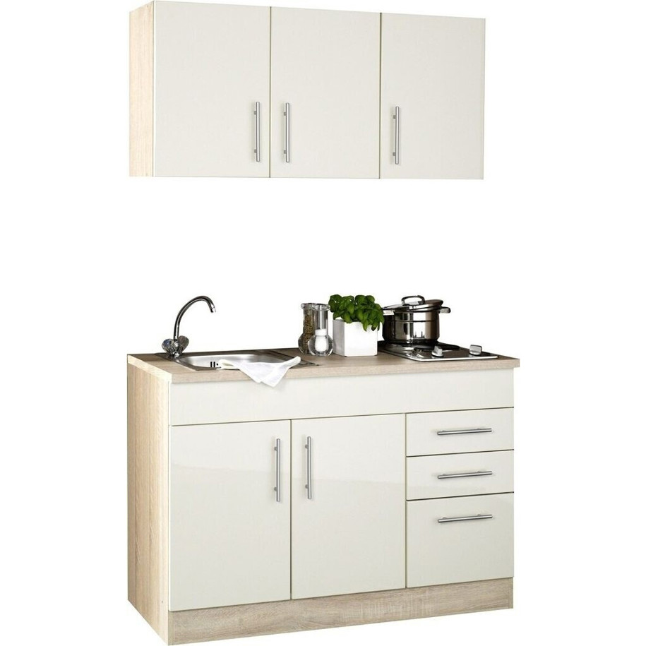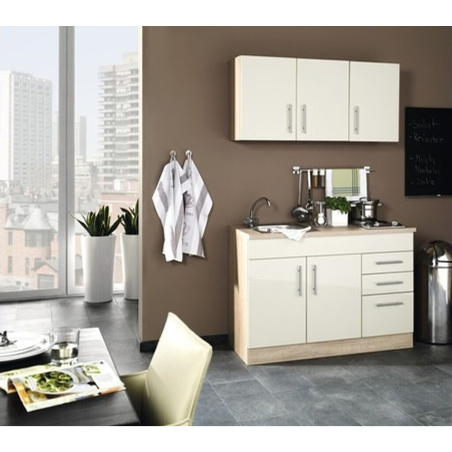 Held Möbel Miniküche TORONTO 120 cm - Kompaktküche mit Geräten in Creme
