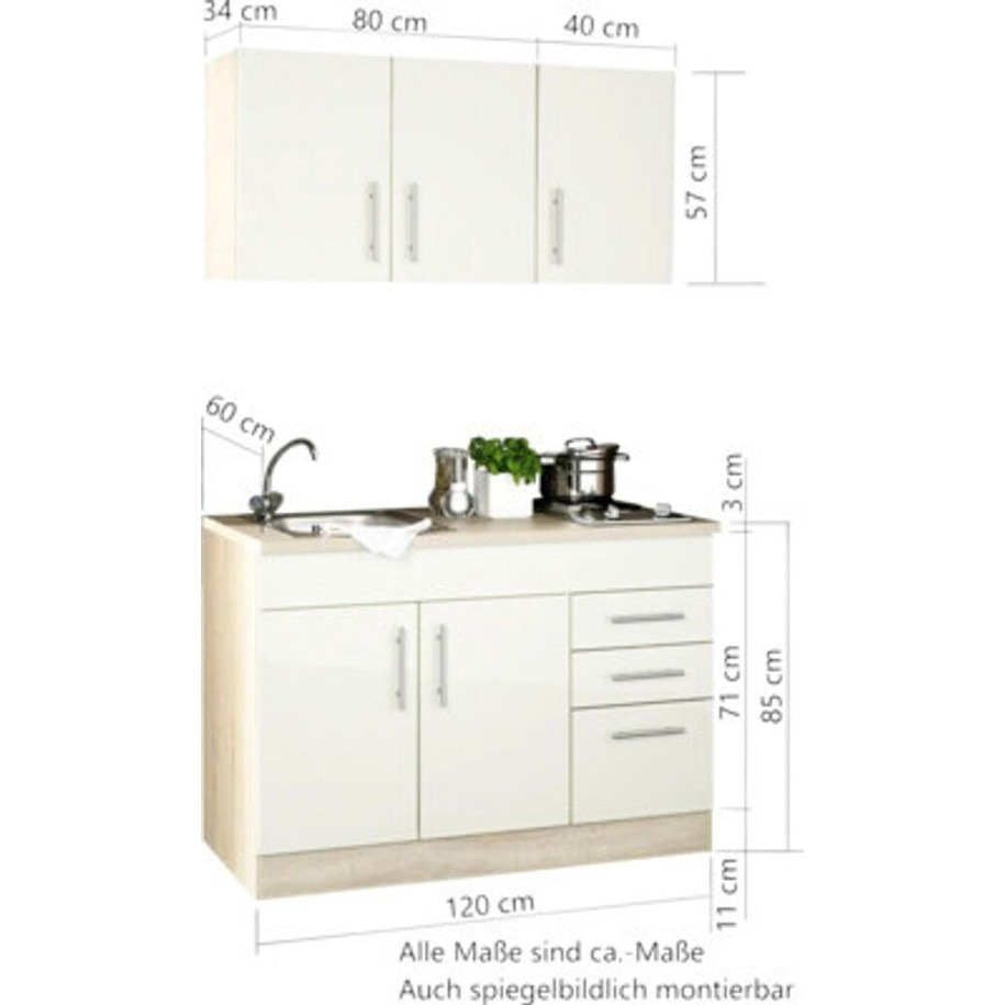 Die Held Möbel Miniküche mit Geräten TORONTO in elegantem Creme bietet Ihnen eine perfekte Lösung für kleine Räume. Mit einer Breite von 120 cm und einer Höhe von 200 cm passt sie ideal in jede Nische und verwandelt selbst die kleinste Küche in einen funktionalen Raum.