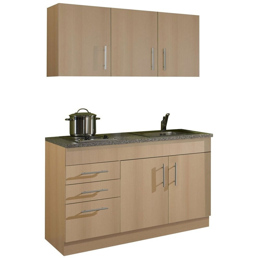Diese Miniküche ist in ansprechenden Farben wie natur, brown und weiß erhältlich und fügt sich somit harmonisch in Ihr Wohnambiente ein. Verleihen Sie Ihrem Raum eine moderne Note mit der eleganten, matten Oberfläche in Buche.