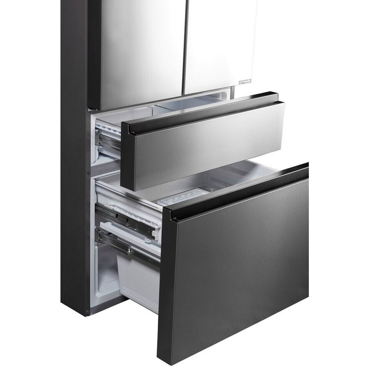 Entdecken Sie den Hisense RF540N4SBI2, einen eleganten French-Door-Kühlschrank in einem modernen silbernen Design, der perfekt für Familien geeignet ist. Mit einer Gesamtkapazität von 302 Litern im Kühlbereich und 178 Litern im Gefrierbereich bietet er ausreichend Platz für all Ihre Lebensmittel.