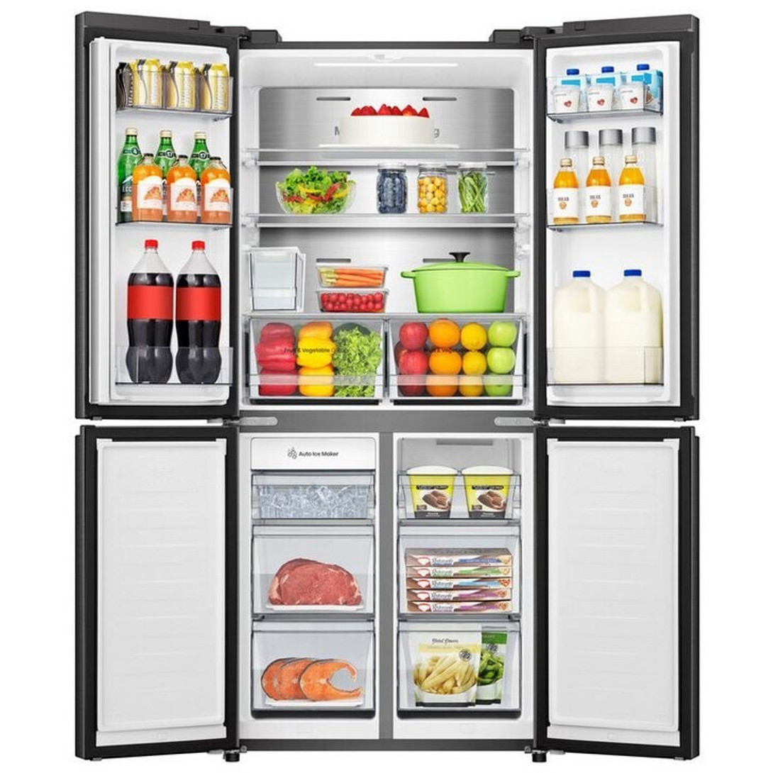 Entdecken Sie den Hisense RQ5P470SYFD, einen vielseitigen und geräumigen Side-by-Side-Kühlschrank, der nicht nur durch sein elegantes schwarzes Design besticht, sondern auch durch seine beeindruckende Funktionalität. Mit einem Gesamtinhalt von 483 Litern, davon 304 Liter im Kühlbereich und 179 Liter im Gefrierbereich, bietet er ausreichend Platz für all Ihre Lebensmittel und Getränke.