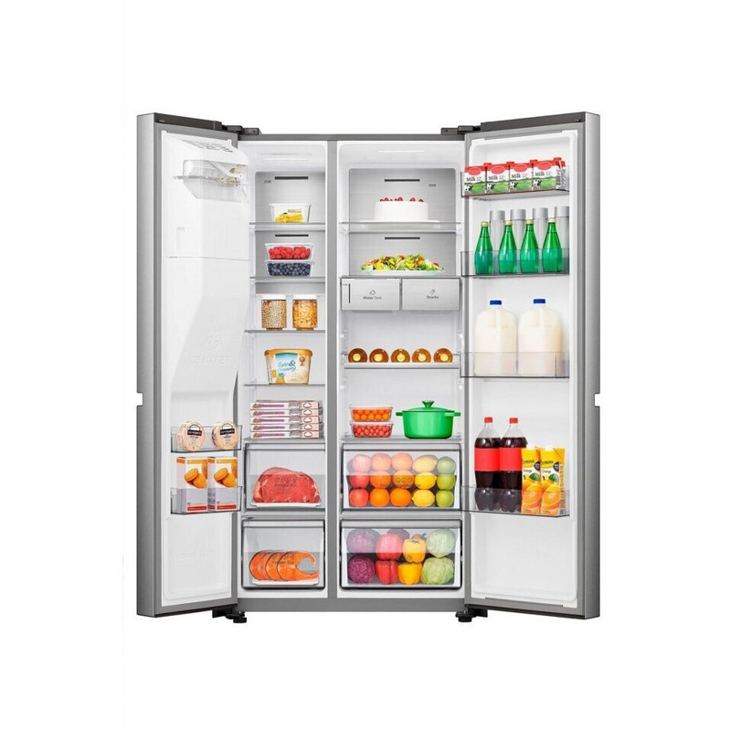 Entdecken Sie den Hisense RS818N4TIE, einen modernen und stylishen Side-by-Side-Kühlschrank in elegantem Grau. Mit einem Gesamtinhalt von 632 Litern bietet dieser Kühlschrank genügend Platz für die gesamte Familie. Der Kühlbereich fasst 417 Liter, während der Gefrierbereich mit 215 Litern ideal für die Aufbewahrung von Lebensmitteln ist.