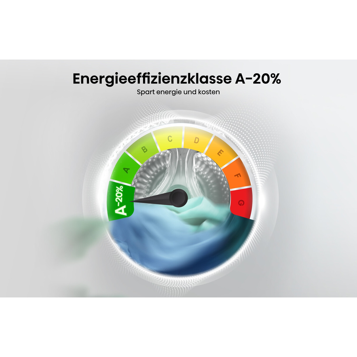 Dank der innovativen Inverter-Motor Technologie arbeitet der Waschtrockner besonders leise und energieeffizient, wobei er eine Energieeffizienzklasse von A beim Waschen bietet. Mit einem Energieverbrauch von nur 33 kWh pro 100 Zyklen beim Waschen und 266 kWh beim Waschen und Trocknen, ist er nicht nur umweltfreundlich, sondern hilft Ihnen auch, Kosten zu sparen.
