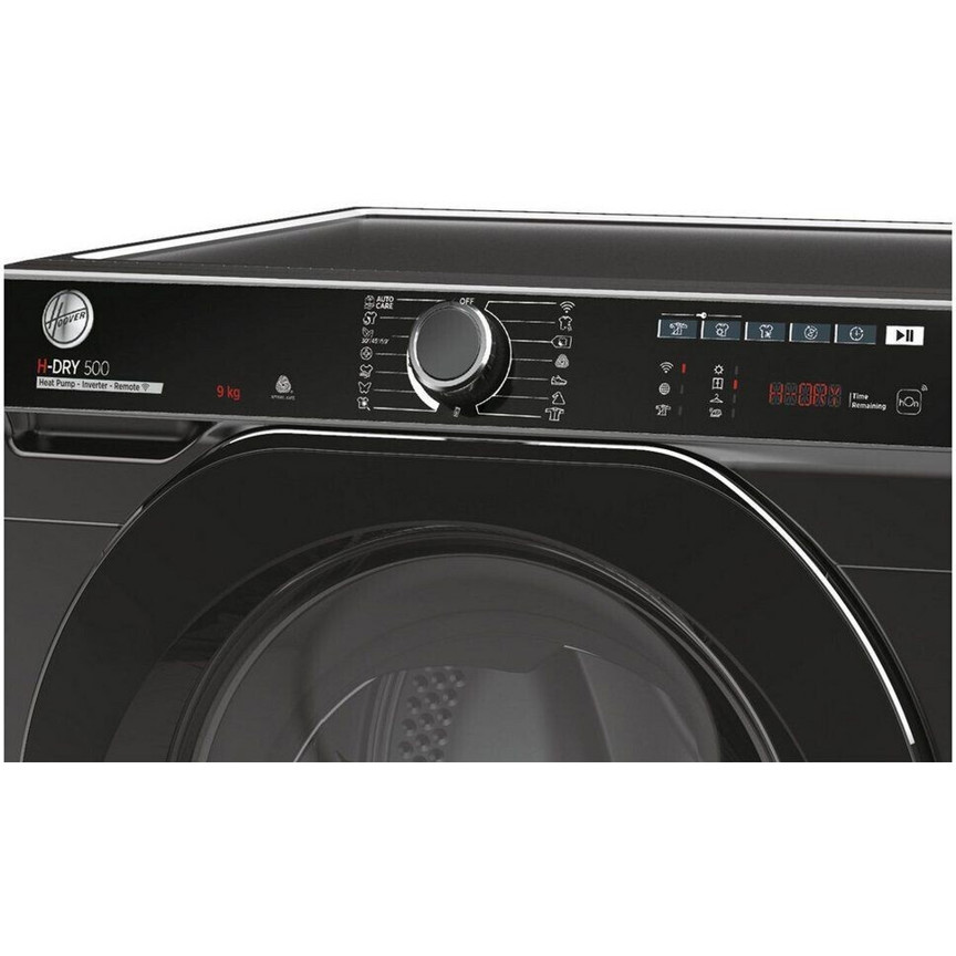 Das benutzerfreundliche Einknopf-Programmwahl-System und die hilfreichen Displayanzeigen für Restzeit, Filterreinigung und Kondenswasserbehälterleerung erleichtern die Bedienung zusätzlich. Außerdem ist der Hoover NDPEH9A3TCBERXSS mit einer praktischen Kindersicherung ausgestattet, was ihn zu einer sicheren Wahl für Familien macht.