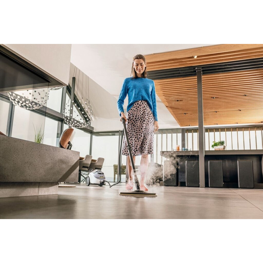 Innerhalb von nur 180 Sekunden ist das Gerät einsatzbereit und erzeugt dabei einen maximalen Dampfdruck von 4,2 bar, um selbst hartnäckigen Schmutz zu entfernen. Dieses vielseitige Gerät eignet sich nicht nur für die Bodenreinigung, sondern auch für die Reinigung von Fenstern und Armaturen.