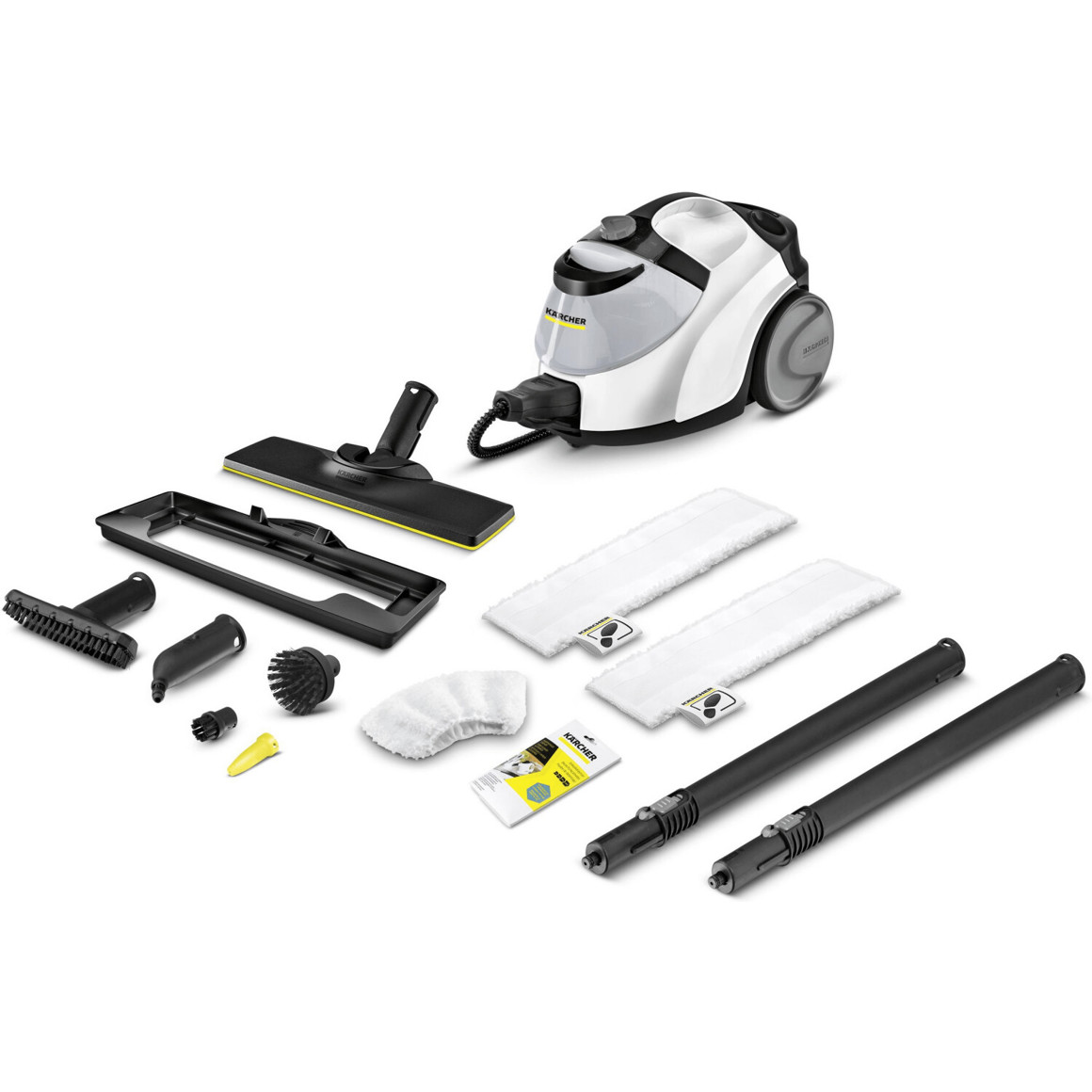 Im Lieferumfang sind eine Handdüse, eine Punktstrahldüse, eine Powerdüse, zwei Rundbürsten, ein Mikrofaserüberzug, ein Verlängerungsrohr sowie Entkalkerpulver enthalten, sodass Sie sofort loslegen können. In stilvollem weiß und schwarz gestaltet, fügt sich der Kärcher SC 5 EasyFix Premium perfekt in Ihr Zuhause ein.