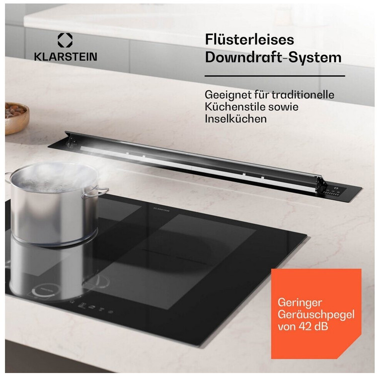 Die Klarstein CGCH3-Brisa bietet eine maximale Gebläsestärke von 495 m³/h und eine beeindruckende Intensivstufe mit bis zu 710 m³/h, um selbst die hartnäckigsten Gerüche schnell zu entfernen. Mit einem Betriebsgeräusch von nur 60 dB bleibt die Küche angenehm ruhig während des Kochens.