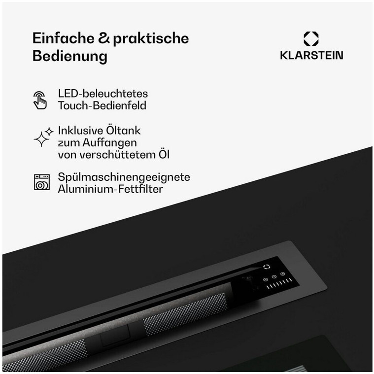 Die Touch-Control Bedienelemente ermöglichen eine einfache und benutzerfreundliche Handhabung. Bitte beachten Sie, dass die Lieferung mit oder ohne Aktivkohlefilter erfolgen kann. Mit dem Fettabscheidegrad der Klasse D sorgt diese Haube dafür, dass Ihre Küche stets frisch und einladend bleibt.