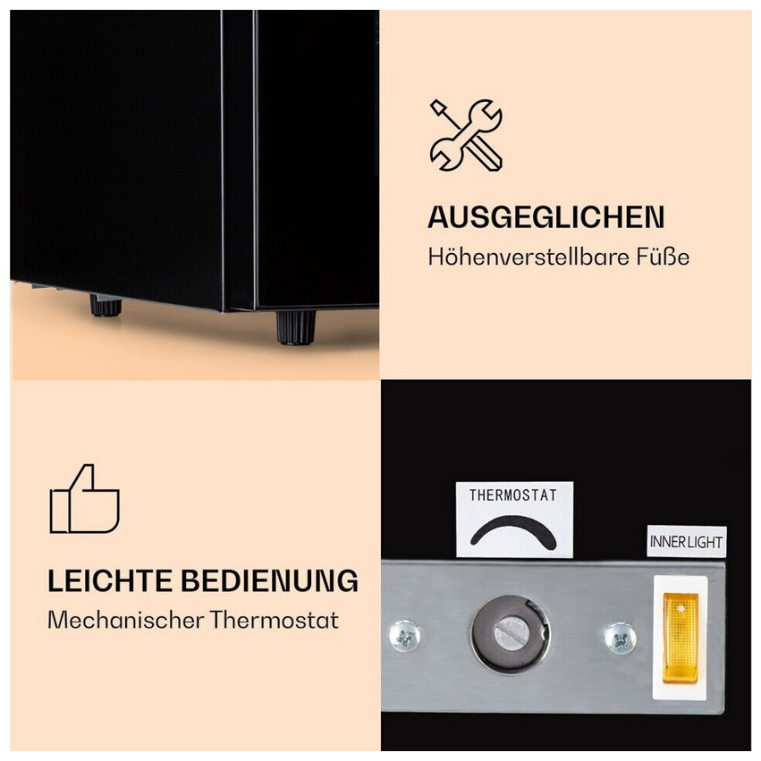 Mit einem Geräuschpegel von nur 40 dB(A) arbeitet der Klarstein IceAge-88 besonders leise, sodass er auch in offenen Wohnbereichen kaum auffällt. Darüber hinaus entspricht er der Energieeffizienzklasse E, was bedeutet, dass Sie sowohl beim Stromverbrauch als auch bei den jährlichen Kosten (Ø Stromkosten pro Jahr: 933,90 Euro) auf der sicheren Seite sind.