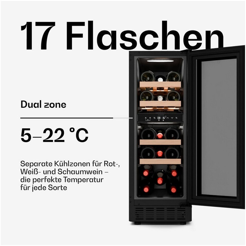 Der Klarstein JCF-58S bietet 2 Temperaturzonen für die optimale Lagerung Ihrer Weine, wobei er einen Temperaturbereich von 5-22 °C abdeckt. Mit einem Nutzinhalt von 52 Litern können bis zu 17 Flaschen (à 0,75 l) sicher und stilvoll gelagert werden. Die Glastür mit wechselbarem Türanschlag (rechts) ermöglicht nicht nur einen Blick auf Ihre Weinsammlung, sondern schützt sie auch vor UV-Strahlung dank des integrierten UV-Filters.
