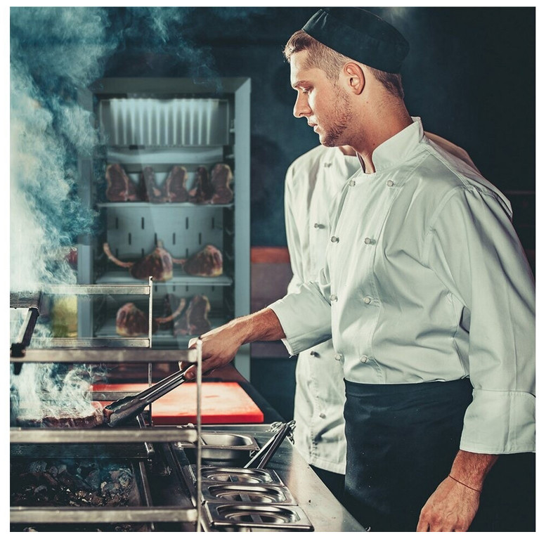Dieser freistehende Reifeschrank bringt nicht nur Stil in Ihre Küche, sondern sorgt auch dafür, dass Ihre Fleischstücke optimal reifen. Mit einer Höhe von 129 cm und einer Breite von 48 cm bietet der Steakhouse Pro 233 ausreichend Platz, um die besten Cuts zubereiten zu können.