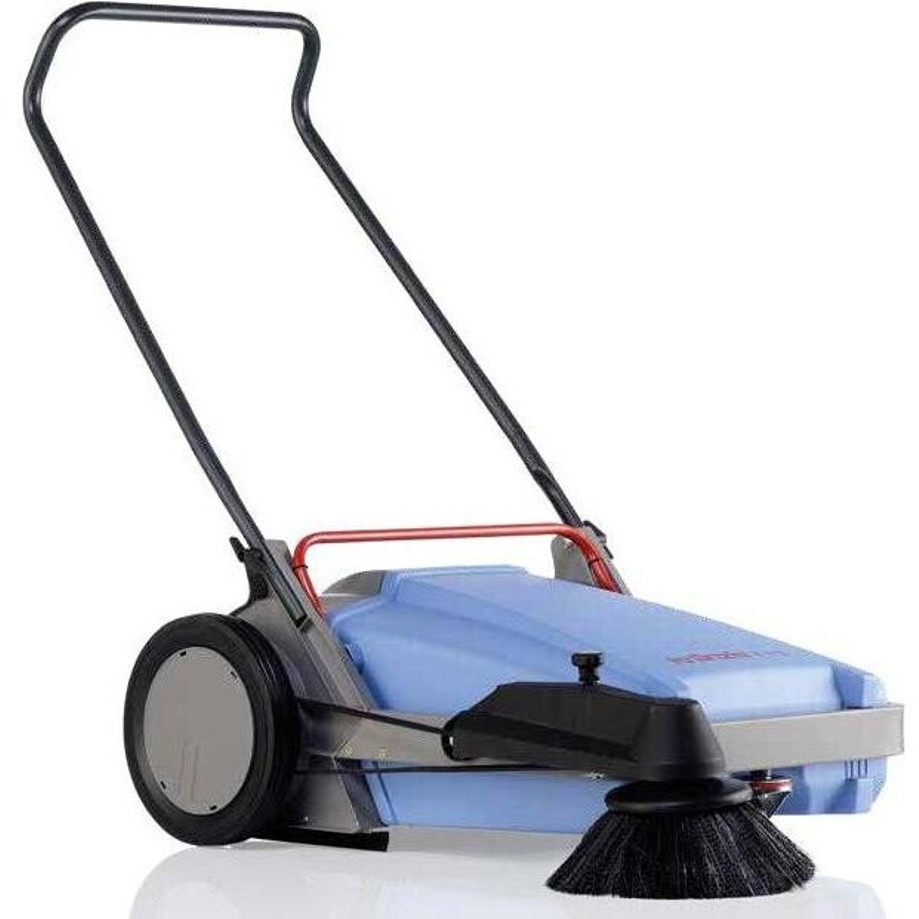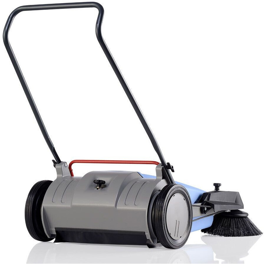 Die klappbare Schubbügel sorgt für mühelose Handhabung und Lagerung der Maschine. Darüber hinaus ist die Kehrmaschine mit einer Main Kehrwalze und einem effektiven Seitenbesen ausgestattet, um selbst schwer erreichbare Stellen mühelos zu reinigen.