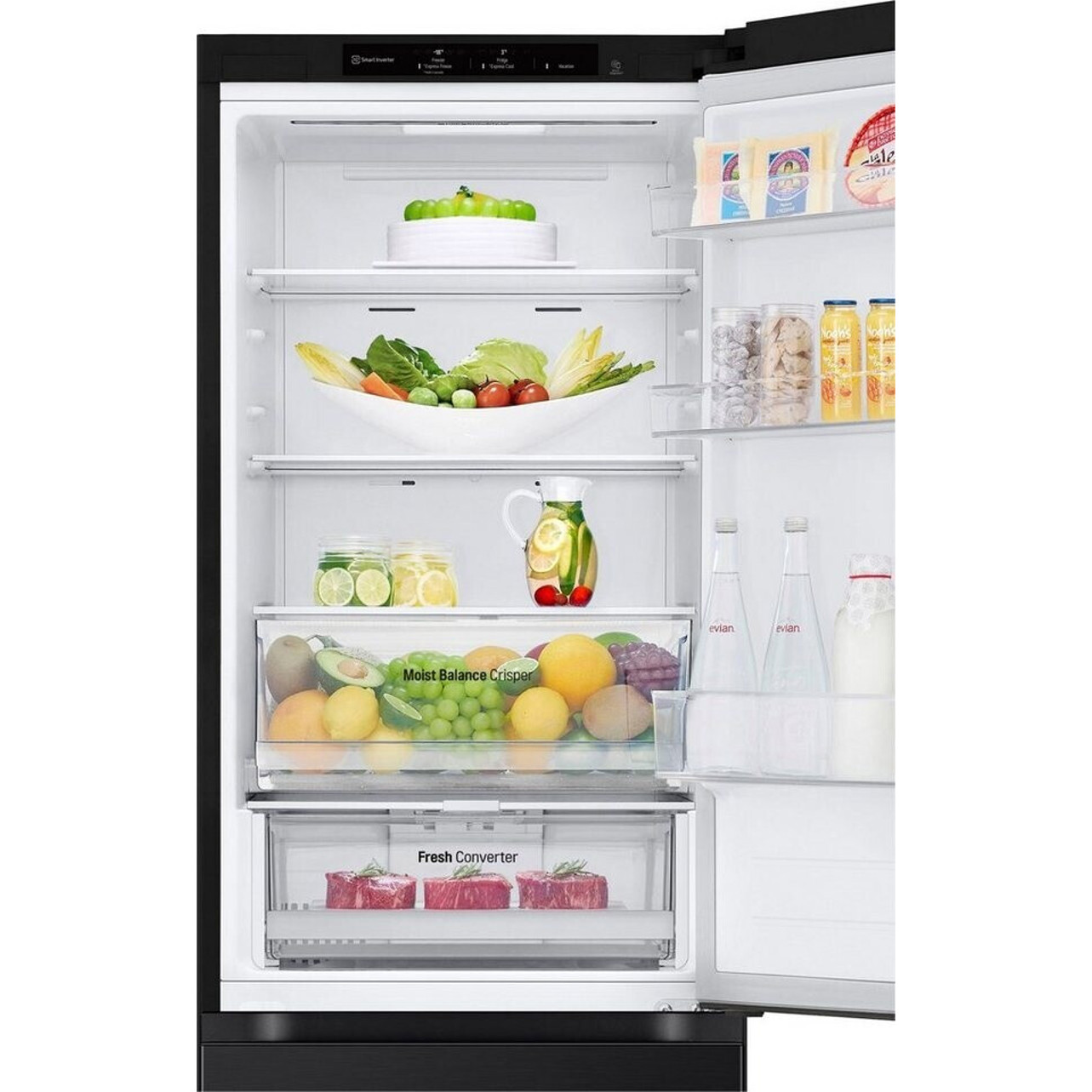 Besonderheiten wie der Inverter Linear Compressor und das No-Frost-Kühlsystem sorgen dafür, dass Ihre Lebensmittel länger frisch bleiben. Auch die Abtauautomatik im Kühlteil und die LED-Beleuchtung bieten zusätzlichen Komfort. Die Innenraum-Ausstattung umfasst ein praktisches Gefrierfach mit Temperaturanzeige, und die Sicherheitsglas-Abstellflächen garantieren Robustheit.