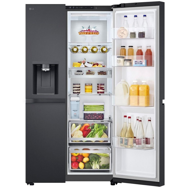 Der LG GSLE91EVAC ist der ideale Side-by-Side-Kühlschrank für moderne Haushalte, der nicht nur durch sein elegantes schwarzes Design besticht, sondern auch zahlreiche innovative Funktionen bietet. Mit einer großzügigen Kapazität von 628 Litern haben Sie reichlich Platz für Ihre Lebensmittel. Der Kühlbereich mit 407 Litern und der Gefrierbereich mit 221 Litern bieten ausreichend Stauraum für alles, was Sie benötigen.