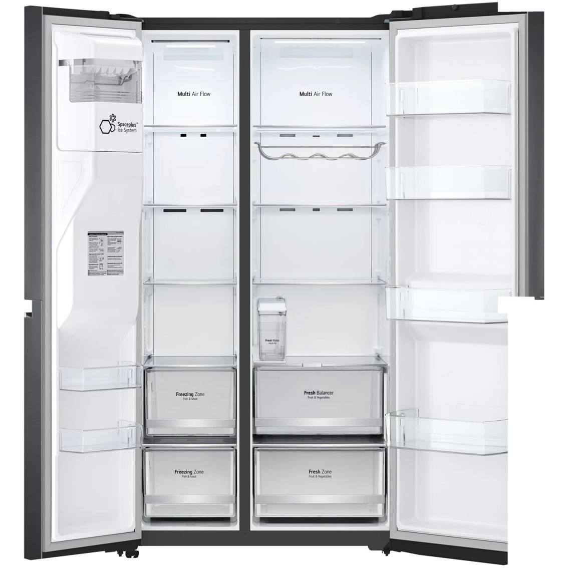Entdecken Sie den LG GSLV71MCLE, einen eleganten und funktionalen Side-by-Side-Kühlschrank in stilvollem Schwarz, der perfekt für Familien geeignet ist. Mit einem Gesamtinhalt von 635 Litern - davon 416 Liter im Kühlbereich und 219 Liter im Gefrierbereich - bietet dieser Kühlschrank ausreichend Platz für all Ihre Lebensmittel. Die praktische Aufteilung, einschließlich 6 Gefriergutschubladen und 4 Abstellflächen, sorgt für optimale Organisation.