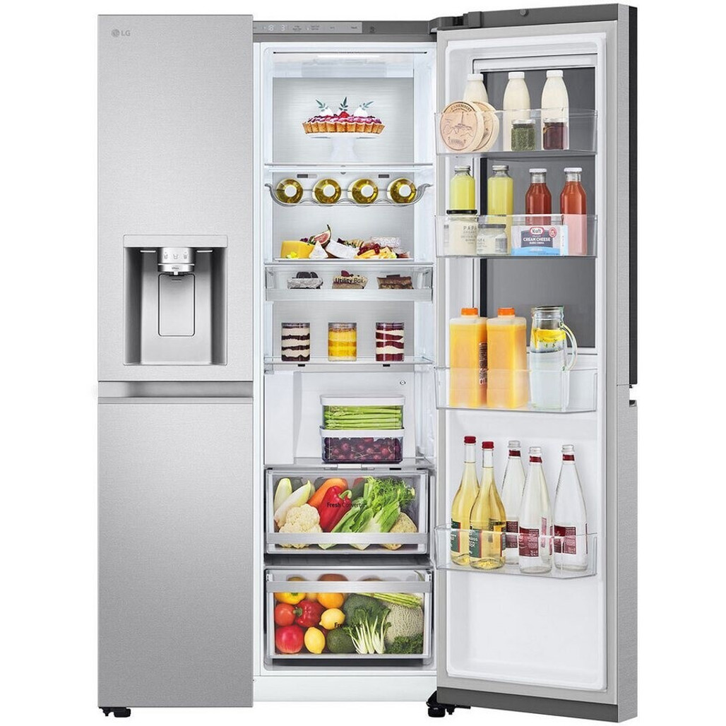 Entdecken Sie den LG GSXE90MBAD - Ihren neuen, stilvollen Side-by-Side-Kühlschrank in eleganter silberner Farbgebung, der perfekt für Familien geeignet ist.