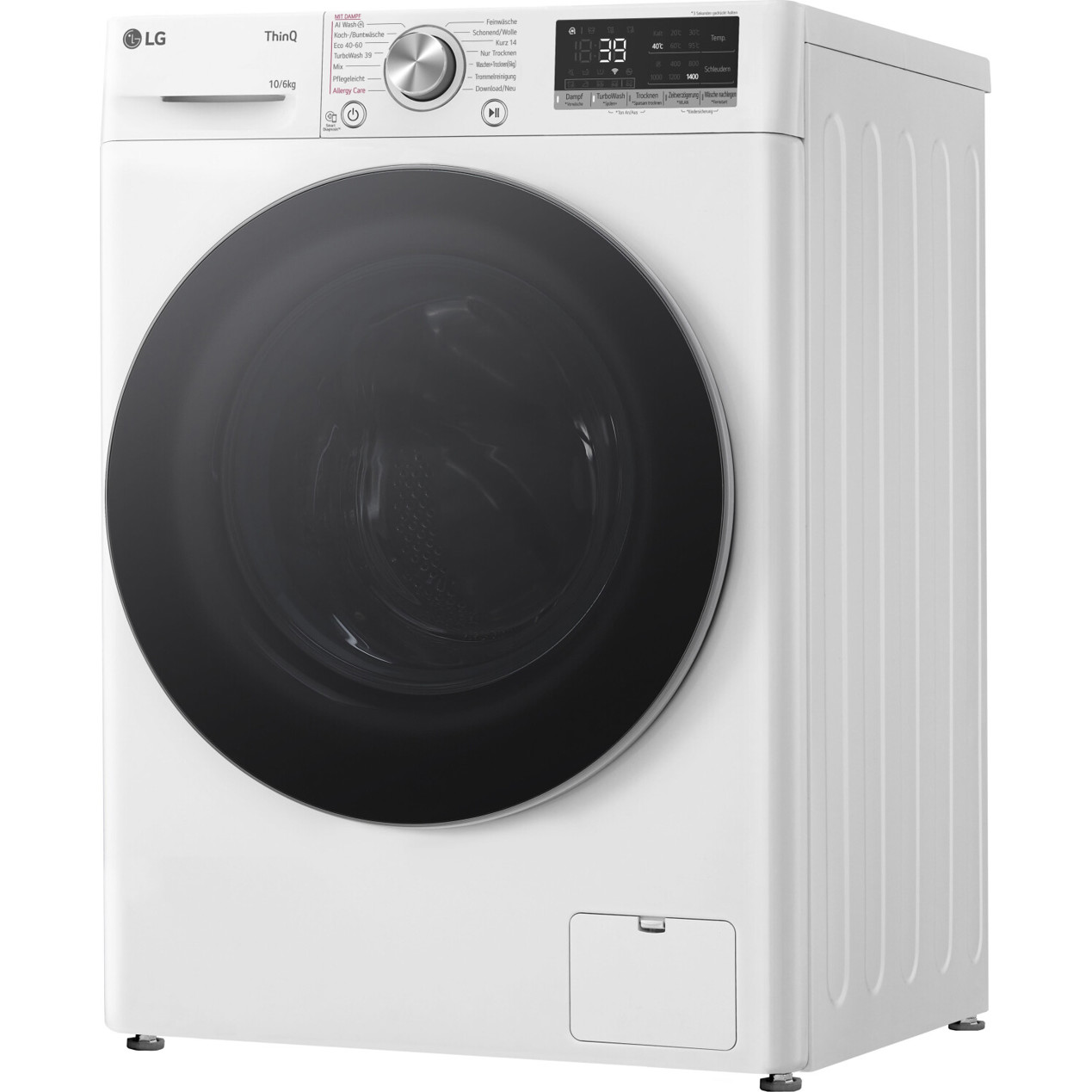 Mit einem Fassungsvermögen von 10 kg beim Waschen und 6 kg beim Trocknen ist dieser Waschtrockner ideal für große Wäscheladungen. Egal, ob Sie die Hygieneprogramme oder Sonderprogramme nutzen, die LG ThinQ App ermöglicht Ihnen eine einfache Steuerung per WLAN und Sprachbefehl.