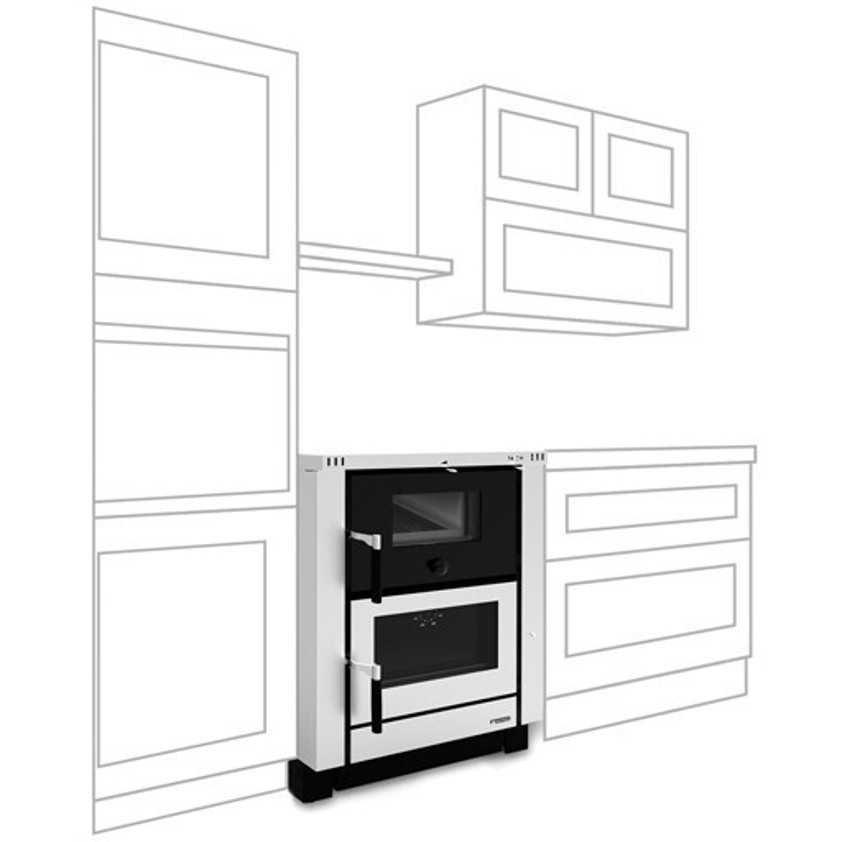 Das Kochfeld aus Glaskeramik und Gusseisen bietet zusätzliche Flexibilität, da es auch mit einem Gaskochfeld ausgestattet werden kann. Genießen Sie die Vorteile eines Dauerbrandherds, der nicht nur Wärme spendet, sondern auch zum Herzstück Ihrer Küche wird.