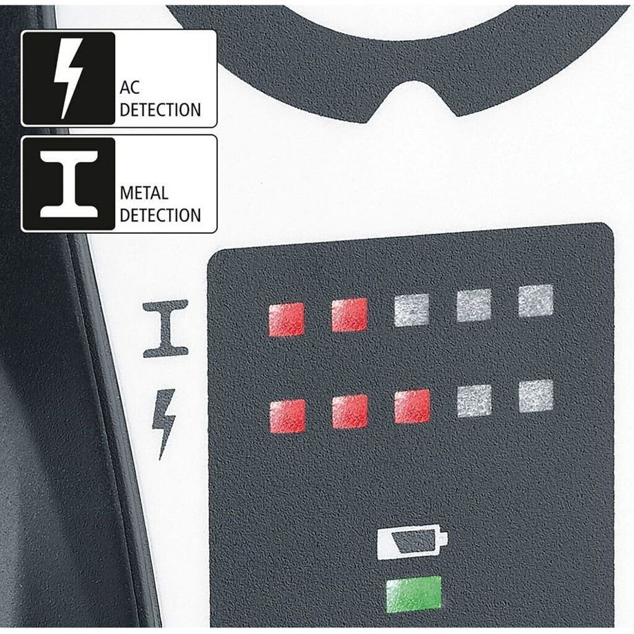 Dank der beeindruckenden max. Ortungstiefe von bis zu 150 cm und einer Genauigkeit von 3 % erzielen Sie präzise Ergebnisse bei allen Ihren Projekten. Das Gerät bietet Ihnen verschiedene Anzeigenmöglichkeiten, einschließlich einer benutzerfreundlichen LED und LCD, ergänzt durch akustische Signale, die Ihnen dabei helfen, optimale Ergebnisse zu erreichen.