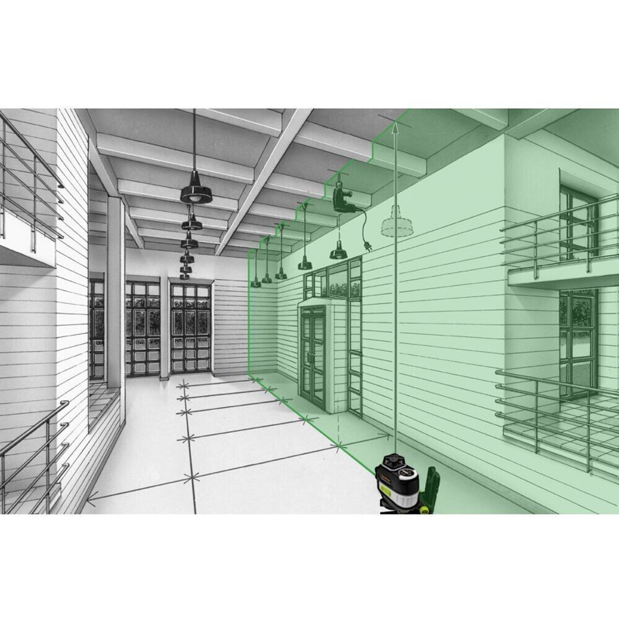 Der Laser hat eine maximale Reichweite von bis zu 55 m ohne Empfänger, was ihn zu einem leistungsstarken Werkzeug für verschiedene Anwendungen macht. Mit einer Arbeitstemperatur von 0°C bis +50°C ist er vielseitig einsetzbar. Der Laser emitierte eine Wellenlänge von 515 nm, was zu einer starken Laserprojektion beiträgt.