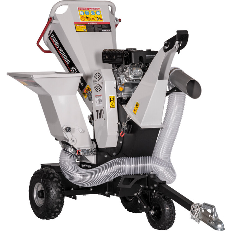 Entdecken Sie die außergewöhnliche Leistungsfähigkeit des Lumag RAMBO HC-10DUO! Dieser leistungsstarke 4-Takt Benzin-Häcksler kombiniert ein innovatives Häckselsystem mit einem robusten Design, um mühelos auch dickere Äste mit einer maximalen Stärke von bis zu 10 cm zu zerkleinern.