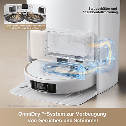 Die fortschrittliche Abluftfilterung und die beutellose Saugtechnologie machen die Reinigung effektiv und einfach. Mit einer starken Saugkraft von 24.000 Pa entfernt der Roboter mühelos Staub und Schmutz von Ihren Böden.