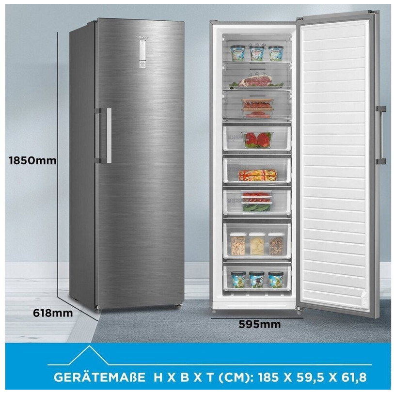 Mit einer Bauart von freistehend eignet sich der Gefrierschrank ideal für große Haushalte und bietet mit insgesamt 5 Gefriergutschubladen eine optimale Organisation. Die Maße von 59,5 cm in der Breite, 61,8 cm in der Tiefe und 185 cm in der Höhe machen ihn zu einem echten Blickfang in Ihrer Küche.
