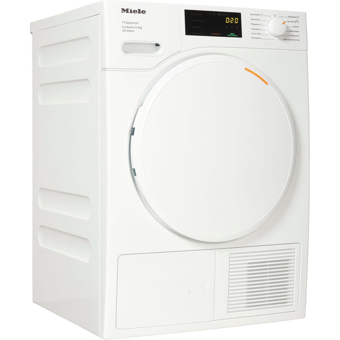 Entdecken Sie den Miele TSC663WP Wärmepumpentrockner in klassischem Weiß, der mit einer Höhe von 85 cm und einer Breite von 59,6 cm für Haushalte von 3-4 Personen ideal ist. Mit einer Füllmenge von 8 kg bietet er ausreichend Platz für Ihre Wäsche.