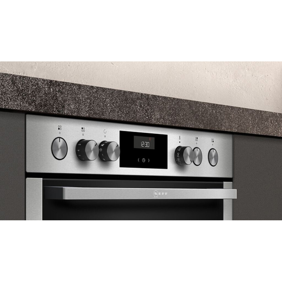 Entdecken Sie den Neff ECC1642I Einbauherd, der nicht nur durch seine Energieeffizienzklasse A besticht, sondern auch durch seine bemerkenswerte Funktionalität. Mit einer kompakten Tiefe von 54,8 cm und einem großzügigen Innenraum-Volumen von 71 Litern haben Sie genügend Platz für all Ihre kulinarischen Kreationen.