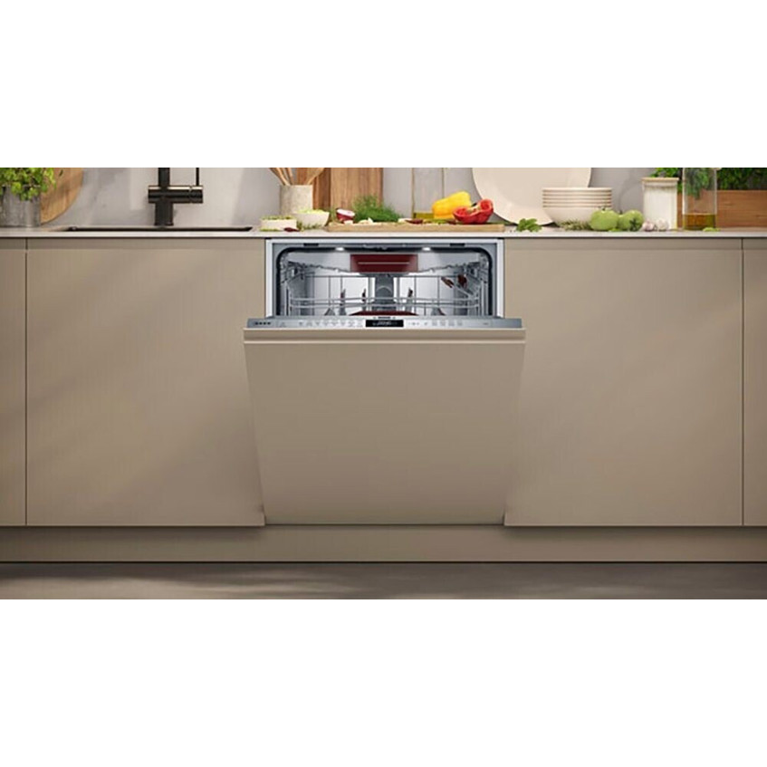 Das Gerät ist vollintegrierbar und lässt sich durch die Edelstahl-Optik harmonisch in jede Küchengestaltung integrieren. Mit dem unterstützten WLAN und der App "Home Connect" haben Sie volle Kontrolle über Ihren Geschirrspüler, egal wo Sie sich befinden.