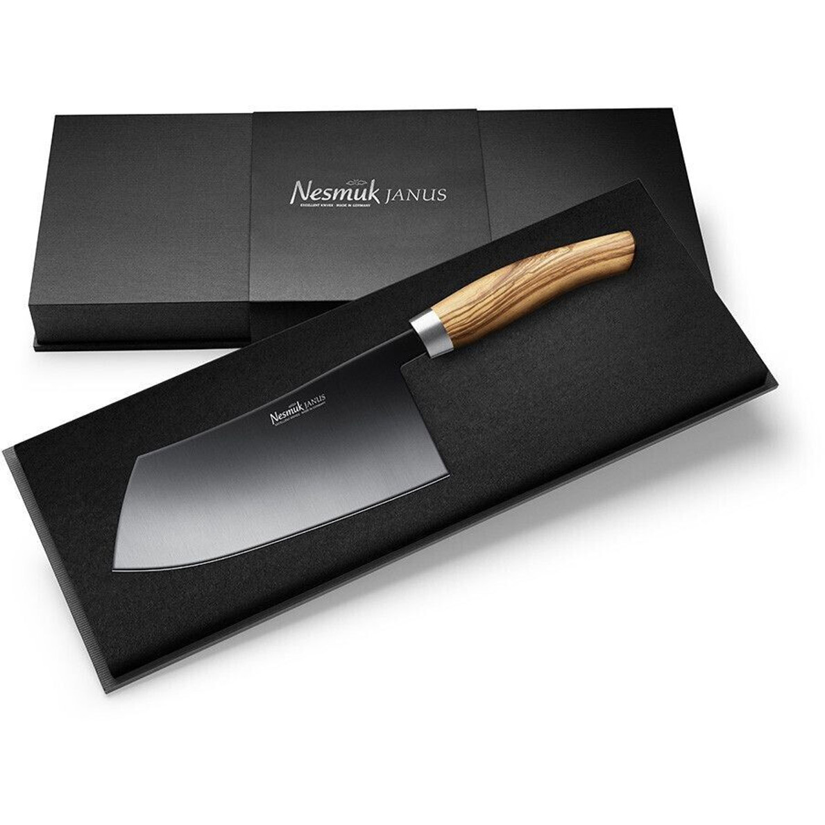 Entdecken Sie das Nesmuk JCKMO180, ein erstklassiges Kochmesser, das in einer eleganten schwarzen Farbe erhältlich ist. Mit seinem präzisen V-Schliff bietet es nicht nur beeindruckende Schärfe, sondern auch eine exzellente Kontrolle beim Schneiden. Die Klinge hat eine Härte von 60 HRC und ist in zwei Längen erhältlich: 5 cm und 18 cm, sodass Sie je nach Bedarf die ideale Größe wählen können.