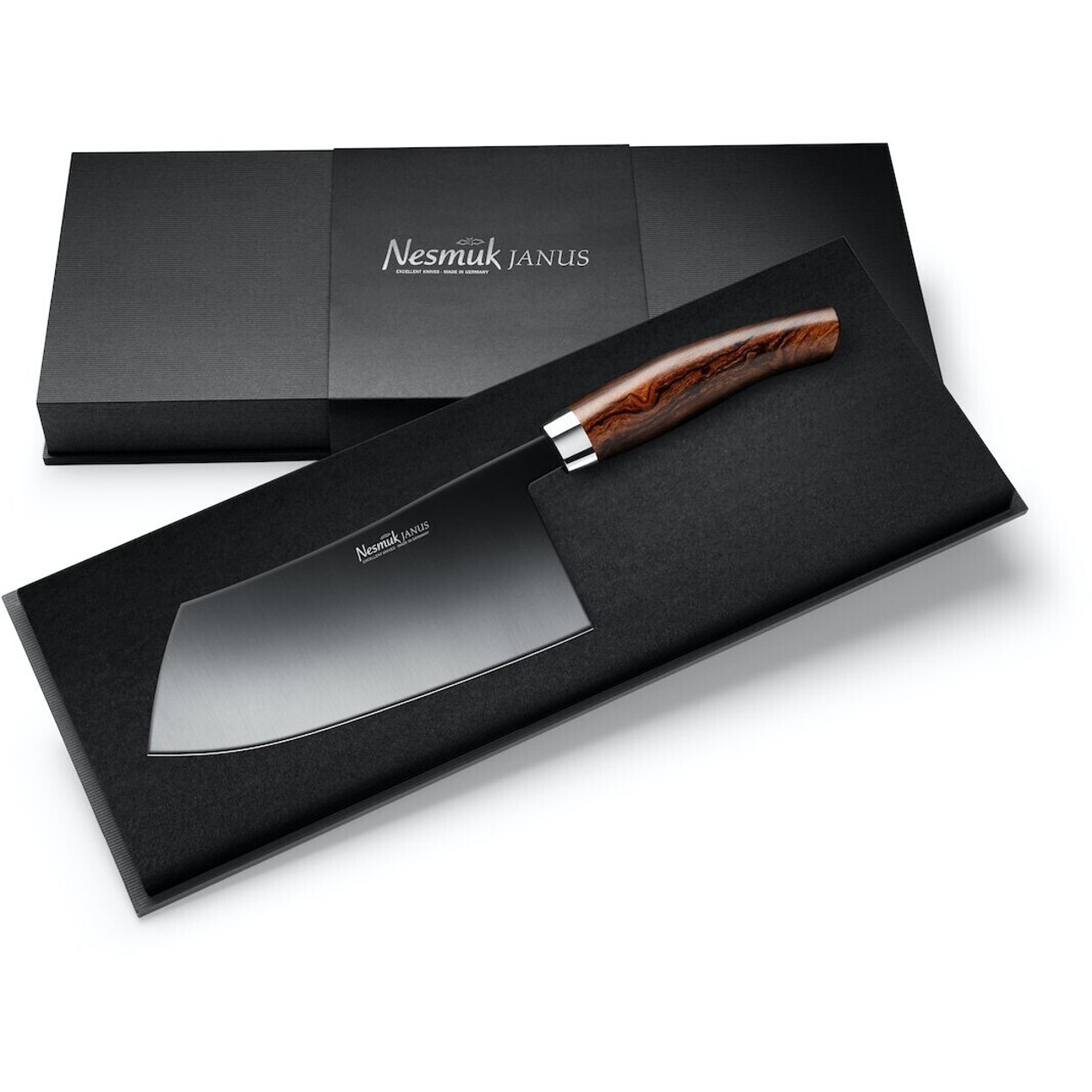 Entdecken Sie das Nesmuk Janus Chinesisches Kochmesser, ein Meisterwerk aus hochwertigem Stahl. Mit einer Klingenlänge von 18 cm bietet dieses ergonomisch gestaltete Kochmesser nicht nur herausragende Funktionalität, sondern auch einen komfortablen Griff aus edlem Wüsteneisenholz, der perfekt in der Hand liegt.