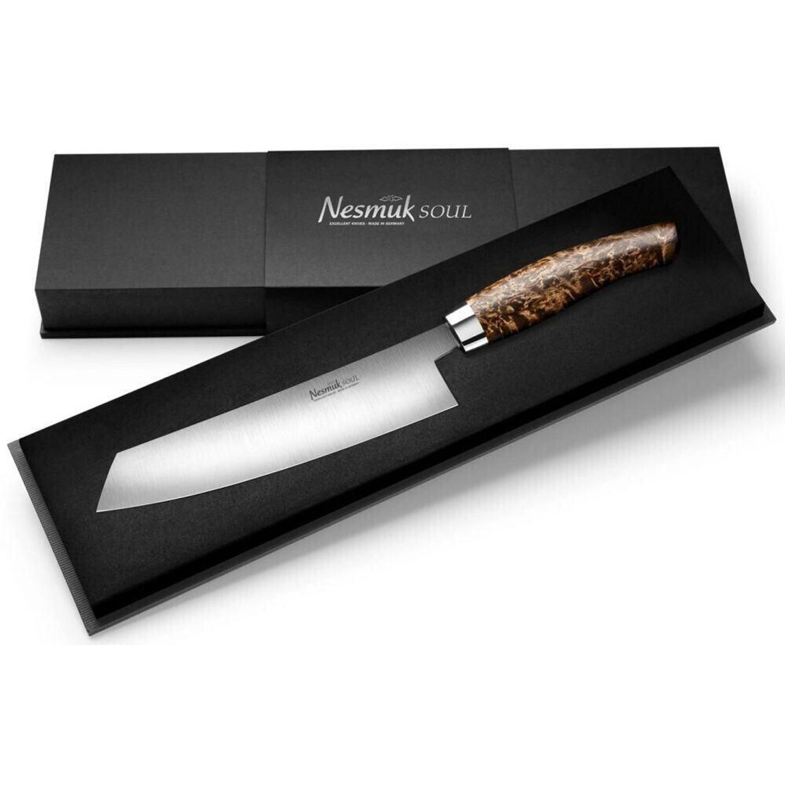 Nesmuk SOUL Kochmesser 180 mm - Niobstahl, 60 HRC, einseitiger Hohlschliff, verschiedene Griffe in Karelischer Maserbirke