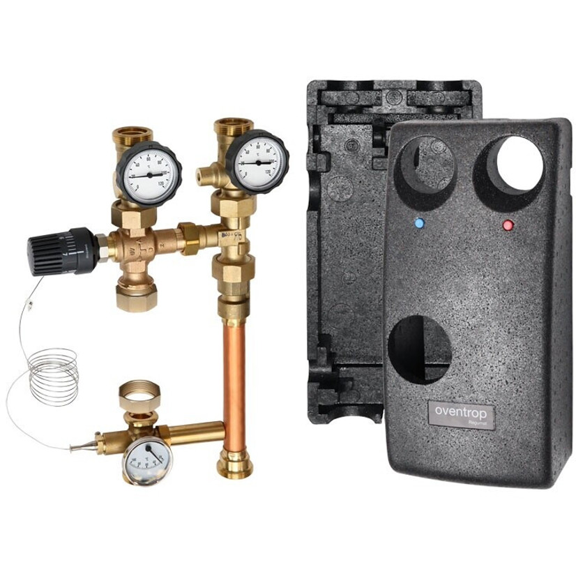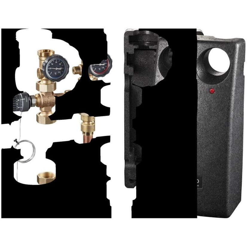 Lieferumfang: | Kugelhahn mit Thermometer, Kugelhahn mit Thermometer und Anschluss für Tauchfühler, Temperaturregler mit Tauchfühler, 3-Wege-Mischventil, Flanschrohr mit Sperrventil, Universalisolierung |