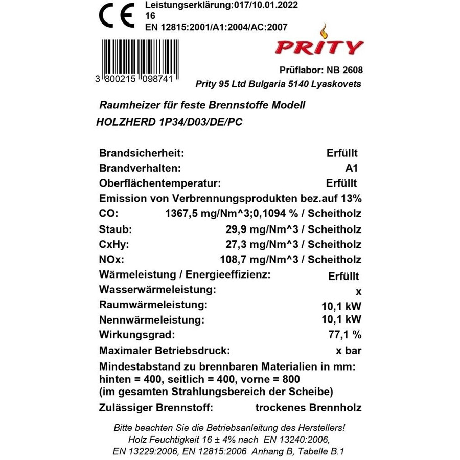 Prity Mia 1P34 Küchenofen - Effiziente Wärme für Ihr Zuhause