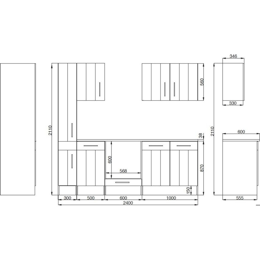 Diese Miniküche ist ein wahres Raumwunder, das mit einer Breite von 240 cm, einer Höhe von 211 cm und einer Tiefe von 60 cm optimal in kleinere Räume passt. Ausgestattet mit einem Backofen, einer Beleuchtung und einem Geschirrspüler bietet sie alles, was Sie für das Kochen und Reinigen benötigen. Zudem ist sie mit einer Ab- und Überlaufgarnitur ausgestattet, was den Komfort beim Kochen erhöht.