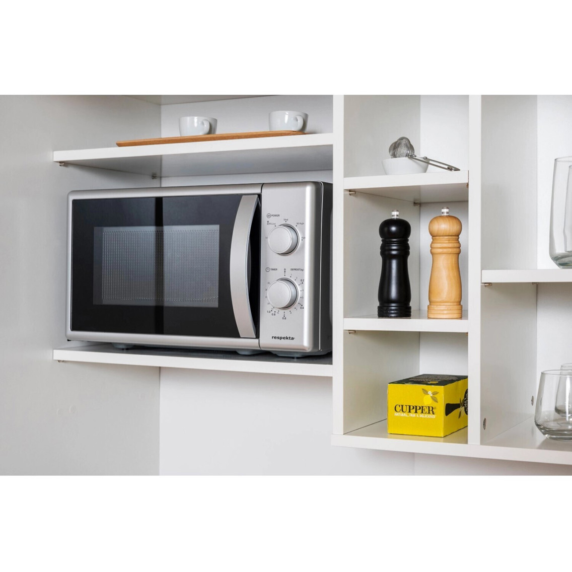 | Mikrowellen-Eigenschaften: | Garraum: 17 l, Leistung: 700 W, 30 min Timer, Auftau-/ Garprogramme |